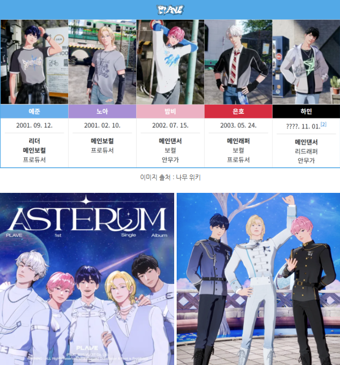 플레이브는 블래스트(VLAST) 소속의 대한민국 버추얼 아이돌 보이그룹으로, 예준, 노아, 밤비, 은호, 하민 5인조로 구성되어 있어요. 2022년 7월 11일 트위터 게시글로 처음 모습을 드러낸 뒤, 같은 해 9월 15일에는 유튜브와 트위치를 통해 첫 라이브 방송을 공개하며 본격적인 활동을 알렸죠. 이후 2023년 3월 12일, 첫 번째 싱글 Asterum으로 정식 데뷔를 합니다 .