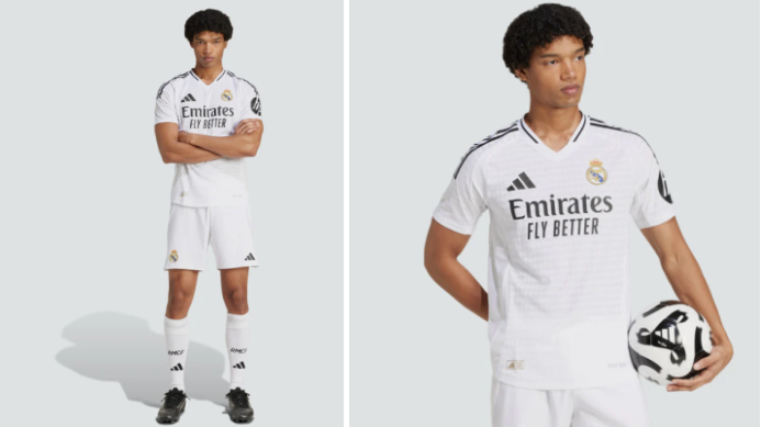 2024/25 시즌 레알 마드리드의 홈 유니폼은 아디다스(Adidas)에서 제작한 'Authentic' 버전으로 출시되었어요. 전통적인 흰색을 기반으로 한 유니폼에 검은색과 금색의 디테일이 적용되어 있습니다. 특히, 전통적인 '하운드투스(Houndstooth)' 패턴이 사용되어 클래식하면서도 현대적인 느낌을 줍니다. 아디다스의 HEAT.RDY 기술이 적용되어 통기성과 습기 조절 기능이 뛰어나며, 경기 중에도 쾌적한 착용감을 제공해 줘요.