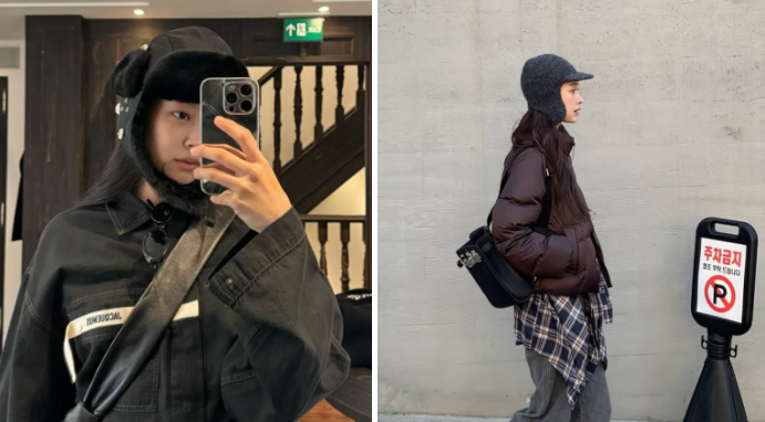 지드래곤은 트루퍼 햇 특유의 유니크한 실루엣을 활용해 미니멀한 룩에 위트 있는 포인트를 더했어요. 심플한 컬러 조합 속에서도 모자 하나로 시선을 사로잡는 스타일링이 인상적이죠. 제니 역시 트루퍼 햇을 자신만의 감각으로 풀어냈습니다. 캐주얼한 아우터와 매치해 자연스럽지만 힙한 무드를 완성하며, 일상 속 데일리 룩에서도 충분히 활용 가능한 아이템임을 보여줬어요. 차정원은 트루퍼 햇을 보다 내추럴한 감성으로 연출했습니다. 패딩과 레이어드 한 스타일링으로 편안하면서도 트렌디한 겨울 데일리 룩을 완성하며 트루퍼 햇의 활용도를 한층 더 높였어요