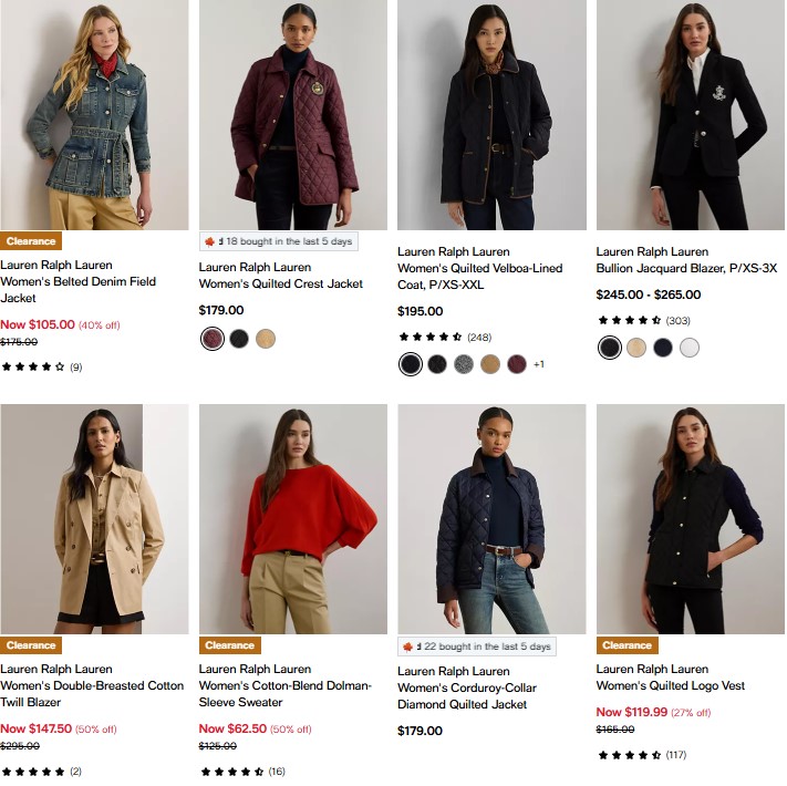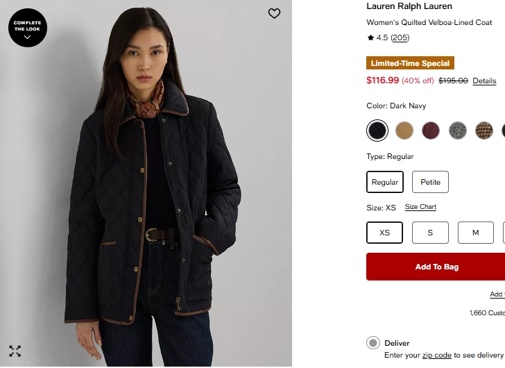 로렌랄프로렌 우먼 퀼팅 벨보아라이너 코트 $116.99
