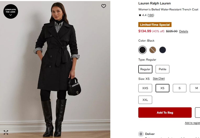 로렌랄프로렌 우먼 벨티드 방수 트렌치코트 $134.99