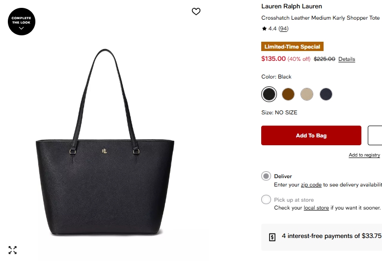 로렌랄프로렌 크로스헤치 레터 쇼퍼백 $135
