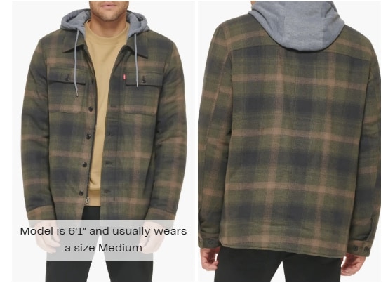 Plaid Faux Shearling Lined Jersey Hood Shirt Jacket