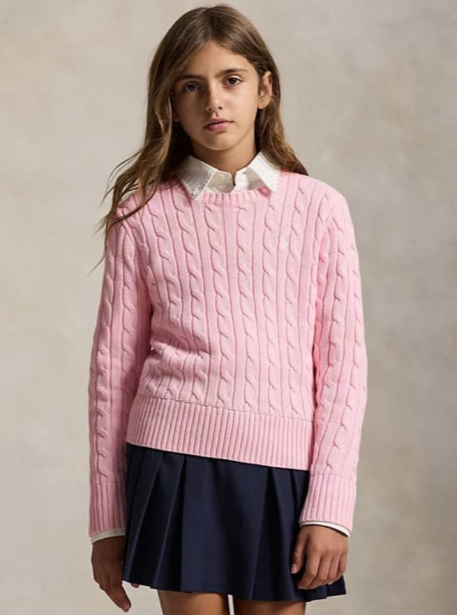 Girls 716 LongSleeve CableKnit Cotton Sweater
