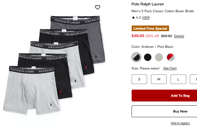 폴로랄프로렌 맨 5pk 클래식 코튼 박서브리프 $48.65