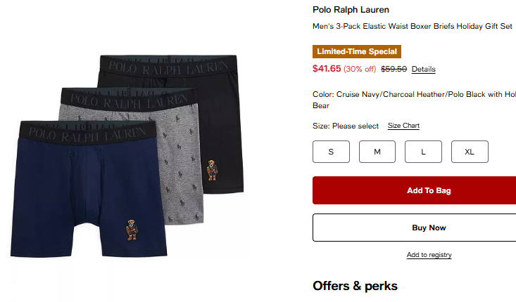 폴로랄프로렌 맨즈 3pk 엘라스틱 웨이스트 박스브리프 $41.65
