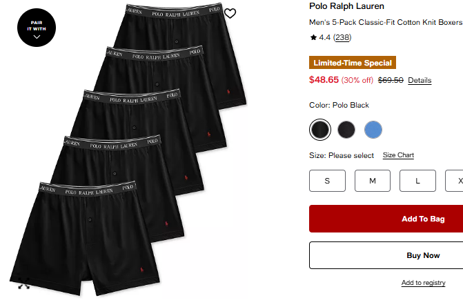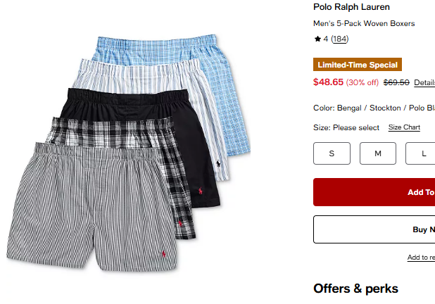 폴로랄프로렌 맨 5pk 우븐 박서 $48.65