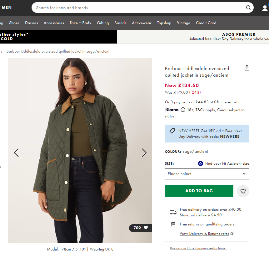 Barbour Liddlesdale oversized quilted jacket in sage/ancient