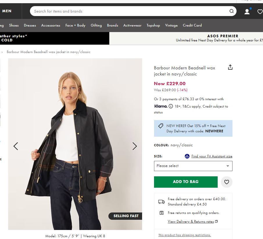 Barbour Modern Beadnell wax jacket in navy/classic