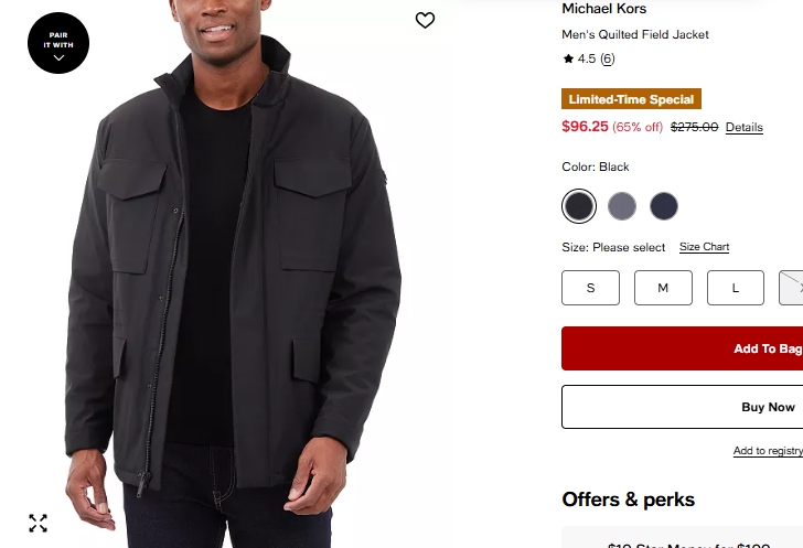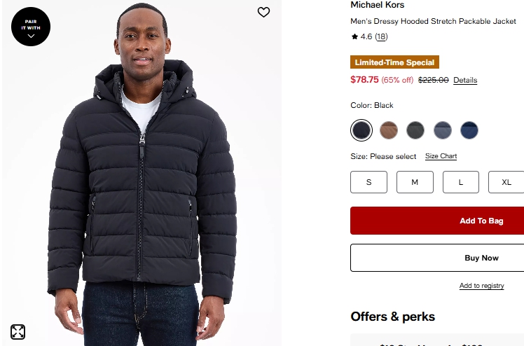 Michael Kors Mens Dressy Hooded Stretch Packable Jacket