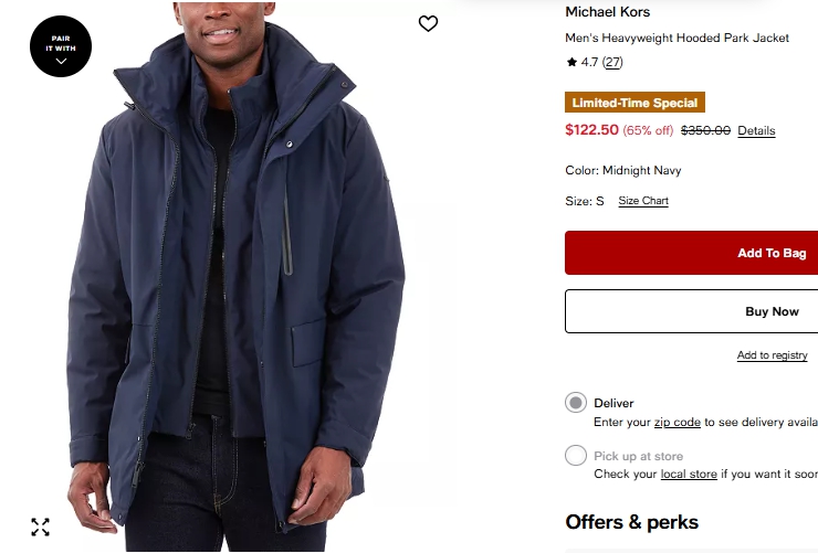 Michael Kors Mens Heavyweight Hooded Park Jacket