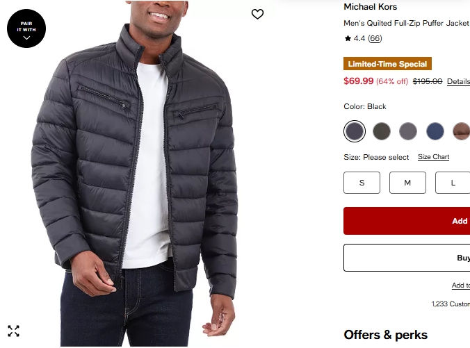 Michael Kors Mens Quilted Full-Zip Puffer Jacket
