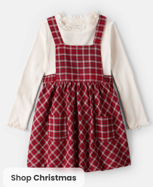 Toddler Girl 2-Piece PlaidCotton Long-Sleeve Dress Set - Red