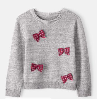 Toddler Girl Bow Cotton Long-Sleeve Sweater - Grey