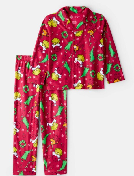 Kid Dr. Seuss™ The Grinch Print Fleece Long-Sleeve Loose Fit 2-Piece Pajamas - Red