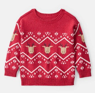 Toddler Boy Christmas Reindeer Fair Isle Cotton Long-Sleeve Sweater - Red