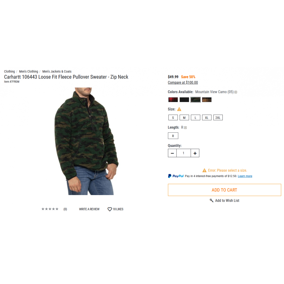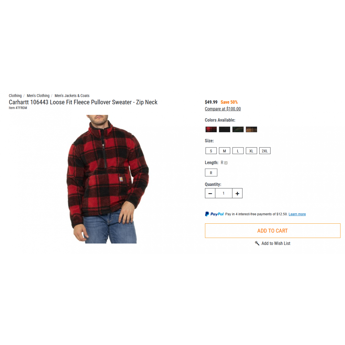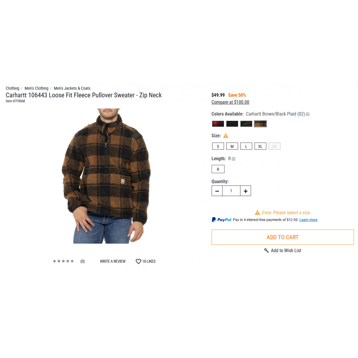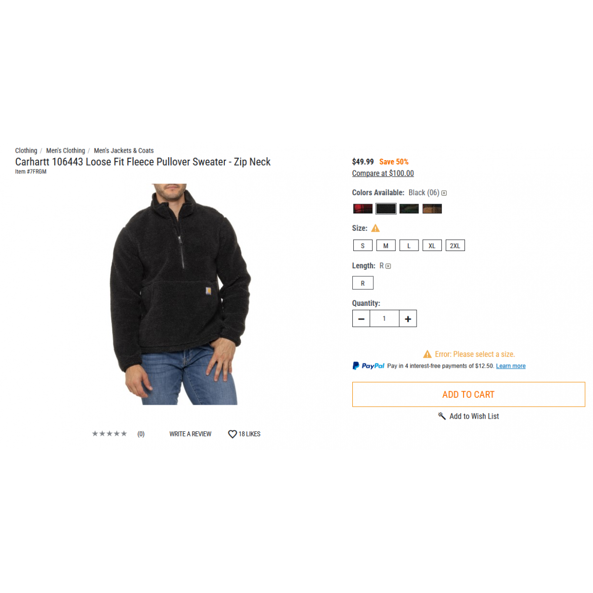 Carhartt 106443 Loose Fit Fleece Pullover Sweater - Zip Neck