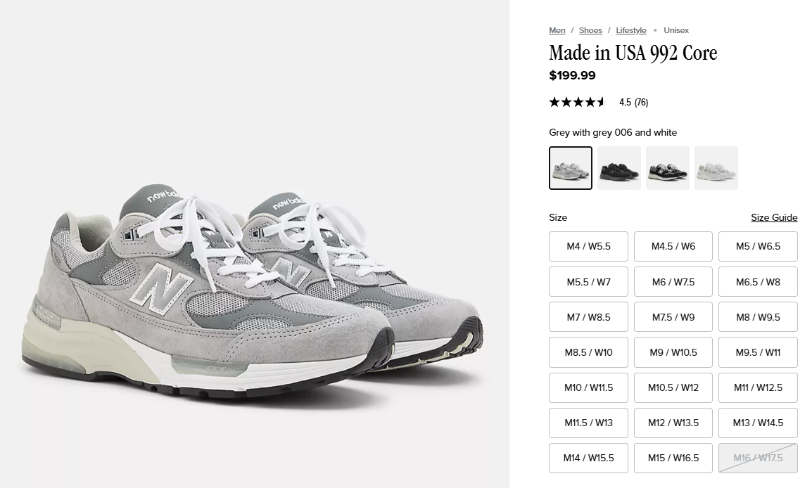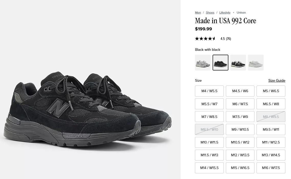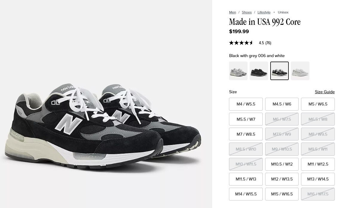 Made in USA 992 Core BLACK with GREY 006 and WHITE