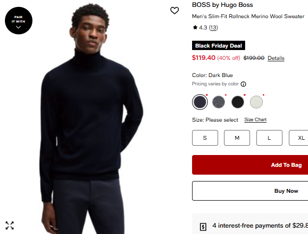 슬림핏 롤넥 메리노율 스웨터 $119.40