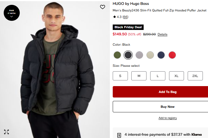 메이시스) 블프 딜!! 휴고보스 퀼팅 풀집 라이너 점퍼 $114.50