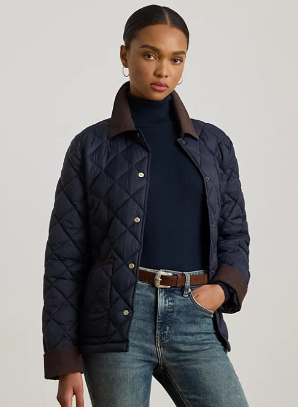 Lauren Ralph Lauren Womens Corduroy-Collar Diamond Quilted Jacket