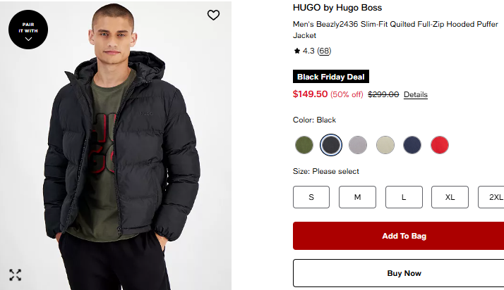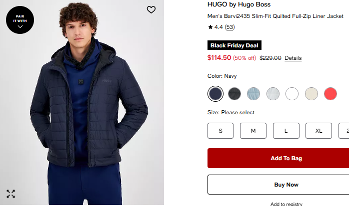 HUGO by Hugo Boss Mens Barvi2435 Slim-Fit Quilted Full-Zip Liner Jacket