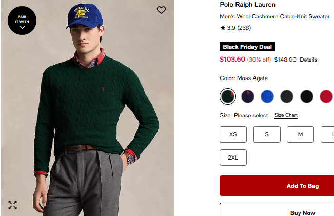 Polo Ralph Lauren Mens Wool-Cashmere Cable-Knit Sweater