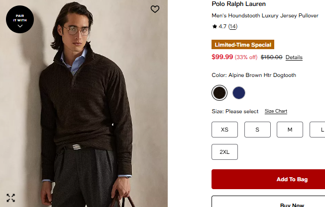 Polo Ralph Lauren Mens Houndstooth Luxury Jersey Pullover