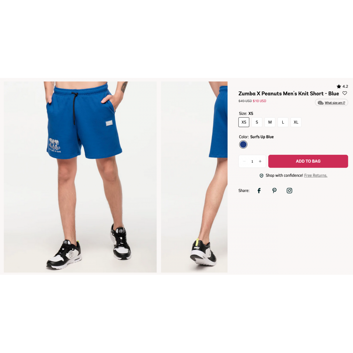 Zumba X Peanuts Men\'s Knit Short - Blue