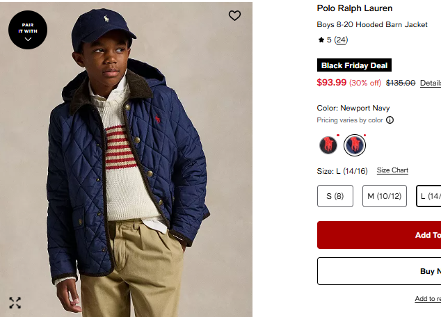 Polo Ralph Lauren Boys 8-20 Hooded Barn Jacket