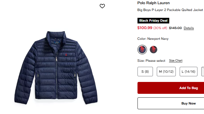 Polo Ralph Lauren Big Boys P-Layer 2 Packable Quilted Jacket
