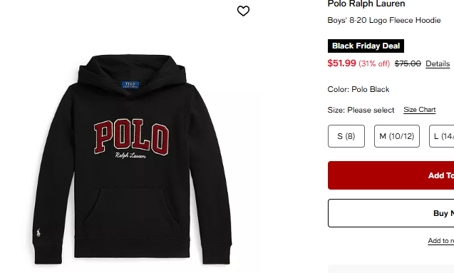 Polo Ralph Lauren Boys 8-20 Logo Fleece Hoodie