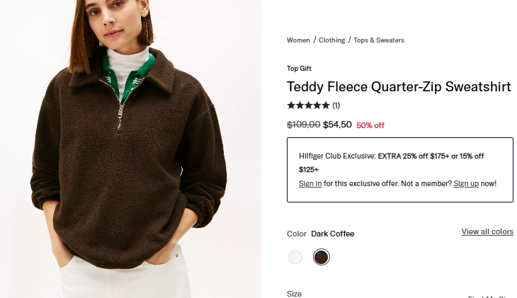 테디 프리스 쿼터집 스웻셔츠 $54.50