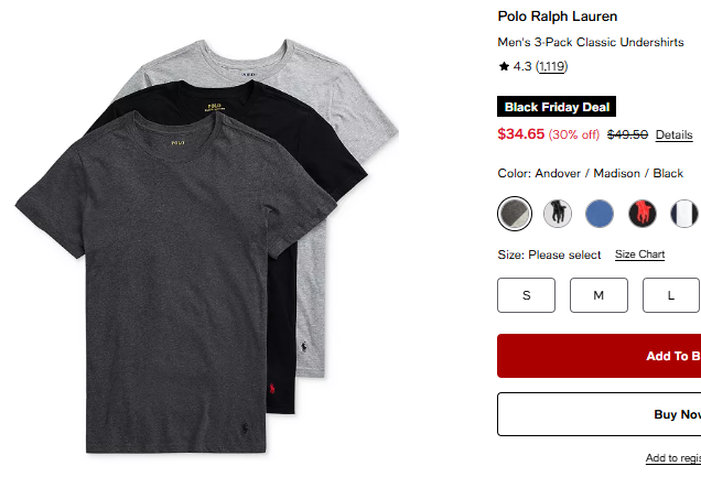 Polo Ralph Lauren Mens 3-Pack Classic Undershirts