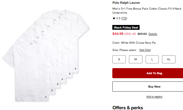 Polo Ralph Lauren Mens 5+1 Free Bonus Pack Cotton Classic-Fit V-Neck
