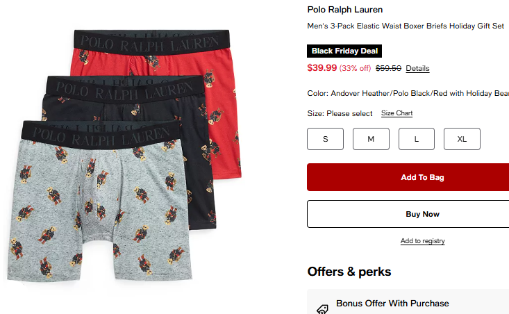 Polo Ralph Lauren Mens 3-Pack Elastic Waist Boxer Briefs Holiday Gift Set