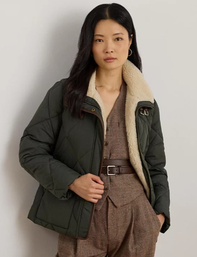 Lauren Ralph Lauren Womens Quilted Velboa-Lined Coat