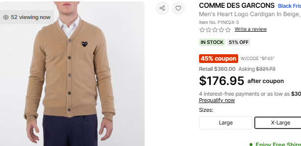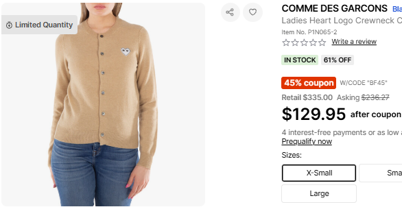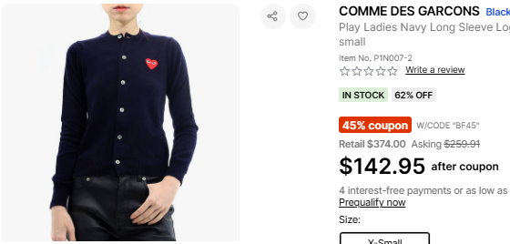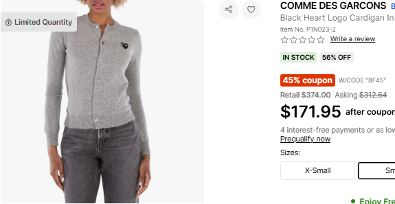 조마샵) 꼼데가르송 하트로고 가디건 $160.95