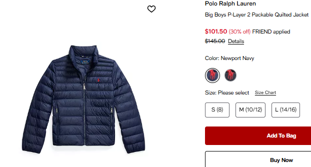 Polo Ralph Lauren Big Boys P-Layer 2 Packable Quilted Jacket