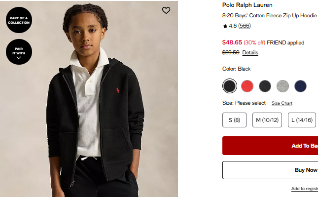 Polo Ralph Lauren 8-20 Boys Cotton Fleece Zip Up Hoodie