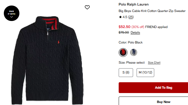 Polo Ralph Lauren Boys 8-20 Quarter-Zip Sweater