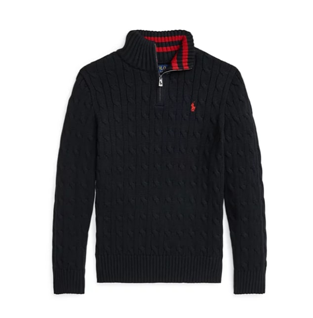 Polo Ralph Lauren Big Boys Cable-Knit Cotton Quarter-Zip Sweater