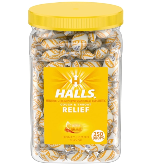 HALLS Relief Honey Lemon Cough Drops, Bulk Cough Drops, 250 Drops