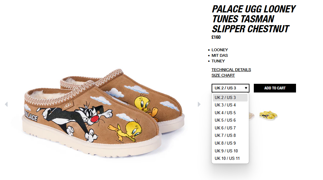 PALACE UGG LOONEY TUNES TASMAN SLIPPER