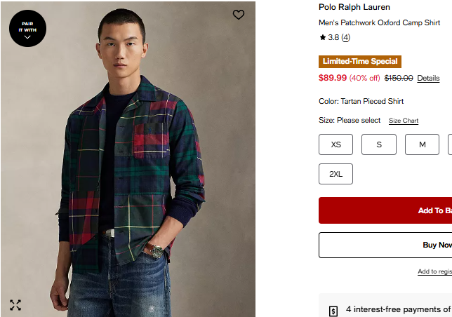 폴로랄프로렌 맨즈 패치워크 옥스포드 캠프 셔츠 $89.99