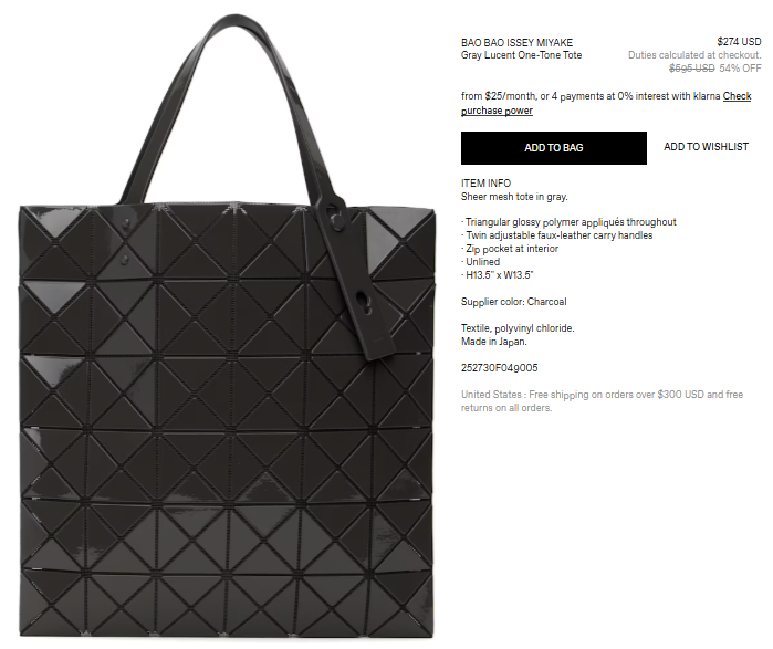 BAO BAO ISSEY MIYAKE Gray Lucent One-Tone Tote 54%할인 $ 274.00 ₩ 다해줌 사줘요 요청하기