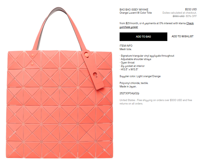 BAO BAO ISSEY MIYAKE Orange Lucent W Color Tote 60%할인 $ 232.00 ₩ 다해줌 사줘요 요청하기