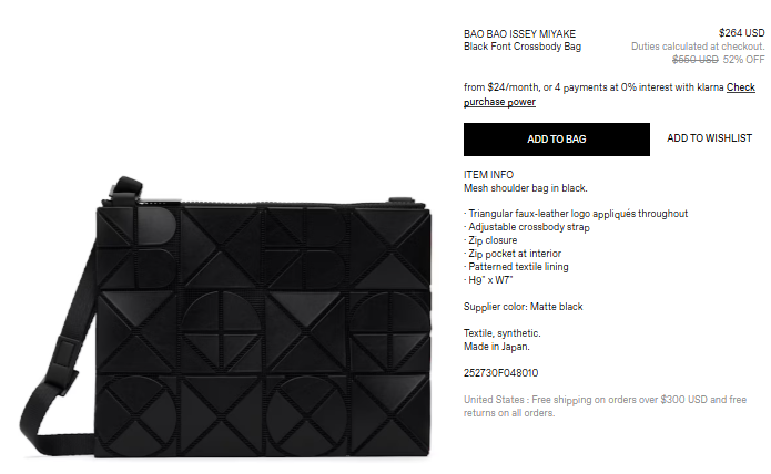 BAO BAO ISSEY MIYAKE Black Font Crossbody Bag 52%할인 $ 264.00 ₩ 다해줌 사줘요 요청하기