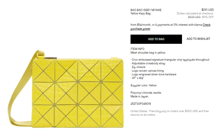 BAO BAO ISSEY MIYAKE Yellow Kaiju Bag 60%할인 $ 210.00 ₩ 다해줌 사줘요 요청하기