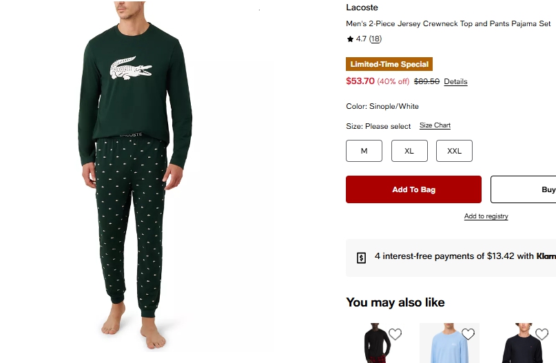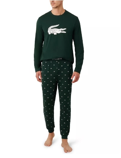 Lacoste Mens 2-Piece Jersey Crewneck Top and Pants Pajama Set
